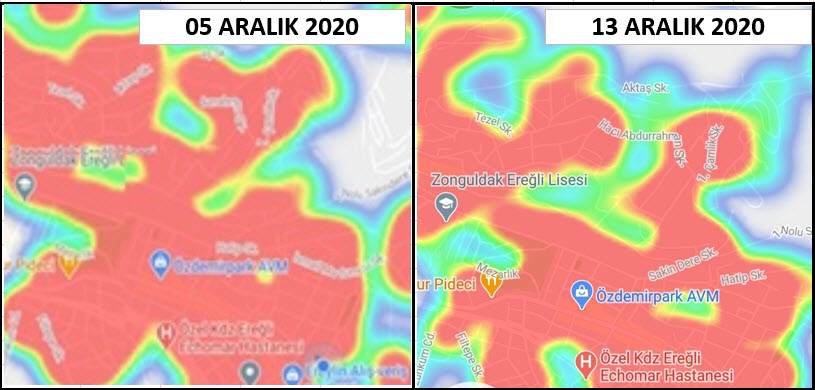 Lojmanlar Mevkii, İstasyon Caddesi, Süleymanlar, Kadı Tarlası bölgesi ve Ereğli İlkokulu (Kırmacı) ile, geçen hafta bir önceki haftaya göre artış olduğu gözlenen Bölücek ve Gülüç beldesinde düşüş eğilimi söz konusu.