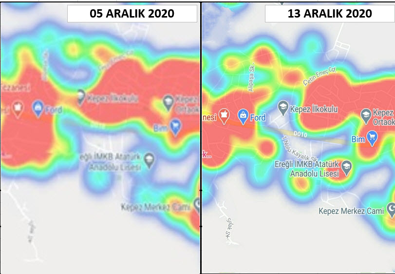 Ereğli’de geçen hafta Çarşı Merkezi ve Erdemir caddesinde görülen artış aynı seviyede kalsa da, Meydanbaşı ve Tezel sokakta düşüş eğilimi göze çarpıyor.