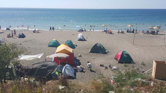 Ereğli’ de bayramın üçüncü günü plajlar mevkiinde yoğunluk yaşandı. Akçakoca ve Amasra’ya girişlerin yasaklanması ile birlikte şehir dışından da akın akın insanların geldiği plajlar bölgesinde adım atacak yer kalmadı. Kimi vatandaşlar çadır kurarken, kimi vatandaşlar da yanlarında getirdikleri şemsiyelerle boş buldukları alana yerleşerek denize girdi.
