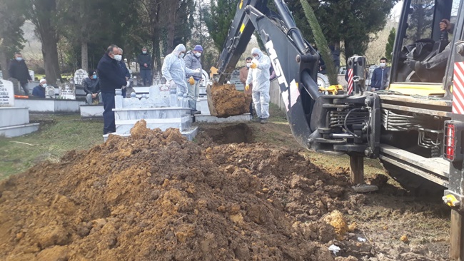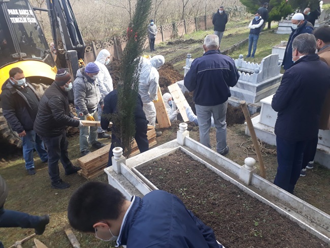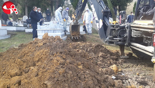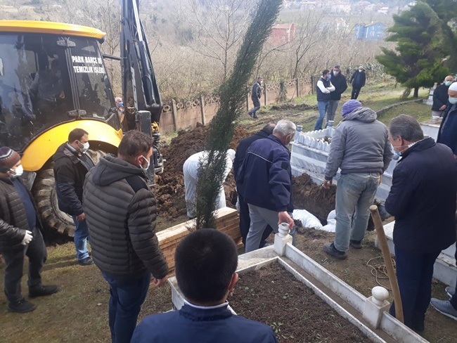 Zonguldak’ın Alaplı ilçesinde Koronavirüs salgını dolayısıyla yaşamını yitiren Gülümser Y. Alaplı Şehir Mezarlığında özel ekipler tarafından son yolculuğuna uğurlandı.