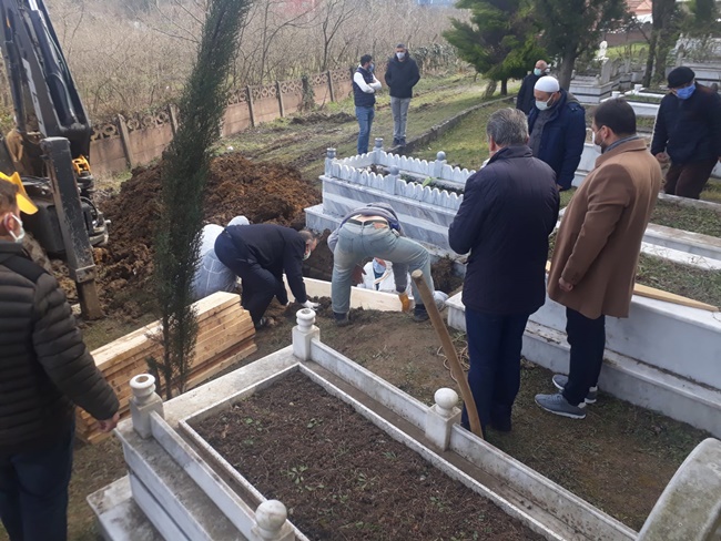 Alaplı’da yaşayan ve yakalandığı Koronavirüs salgını dolayısıyla Devlet hastanesinde tedavi gören Gülümser Y. Hayatını kaybetmişti. Gülümser Y. Alaplı Şehir Mezarlığında özel kıyafetli ekipler tarafından son yolculuğuna uğurlandı.