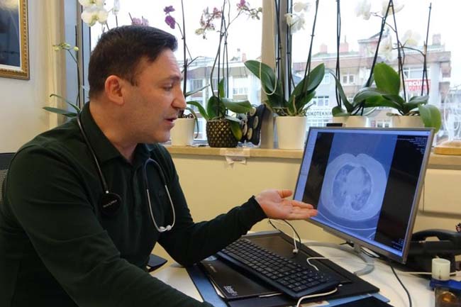 Akabinde korona olduktan 1 ay sonra hastaneye yatan bir hastanın akciğerlerini inceleyen Özkaya, akciğerlerdeki tahribatı gözler önüne serdi.