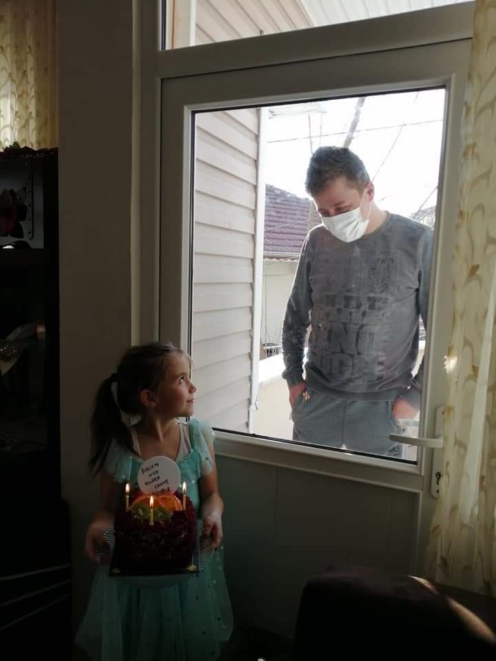 Koronaya yakalananan baba kızının doğumgününü böyle kutladı...
