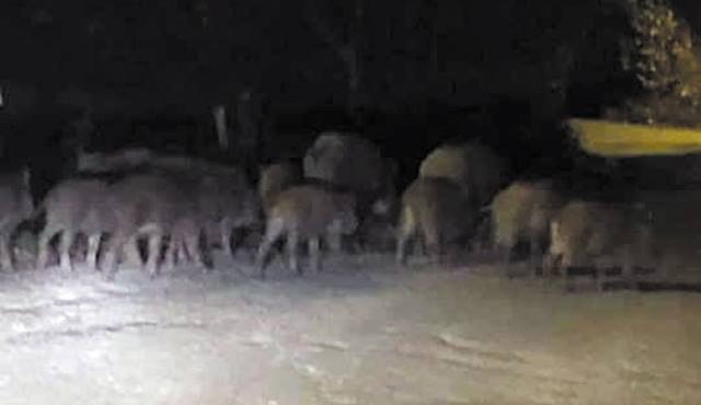 konteynerlerine saldıran domuzların yoldan çekilmesini bekleyen vatandaşlar,