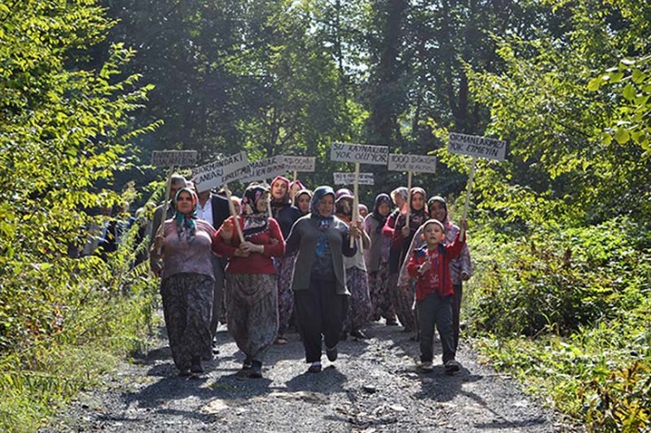 Zonguldak'ın Alaplı ilçesine bağlı Kasımlı köyünde yaşayan vatandaşlar, köylerinde yapılmak istenen taş ocağı çalışma sahasında iş makinesini durdurarak eylem yaptı. Toplanan yaklaşık 200 kişilik grup ellerinde 'Karıncaların yuvaları bozulmasın', 'Bin dönümlük ormanlık alan yok olacak', 'Taş ocağı istemiyoruz' yazılı dövizleri yaklaşık 5 kilometre taşıyarak iş makinesini çalıştığı alana kadar yürüdü.