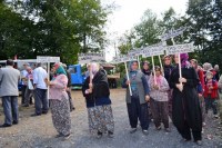 yaptı. Ellerine aldıkları pankartlarla alana yürüyen kadın erkek ve çocuklar,