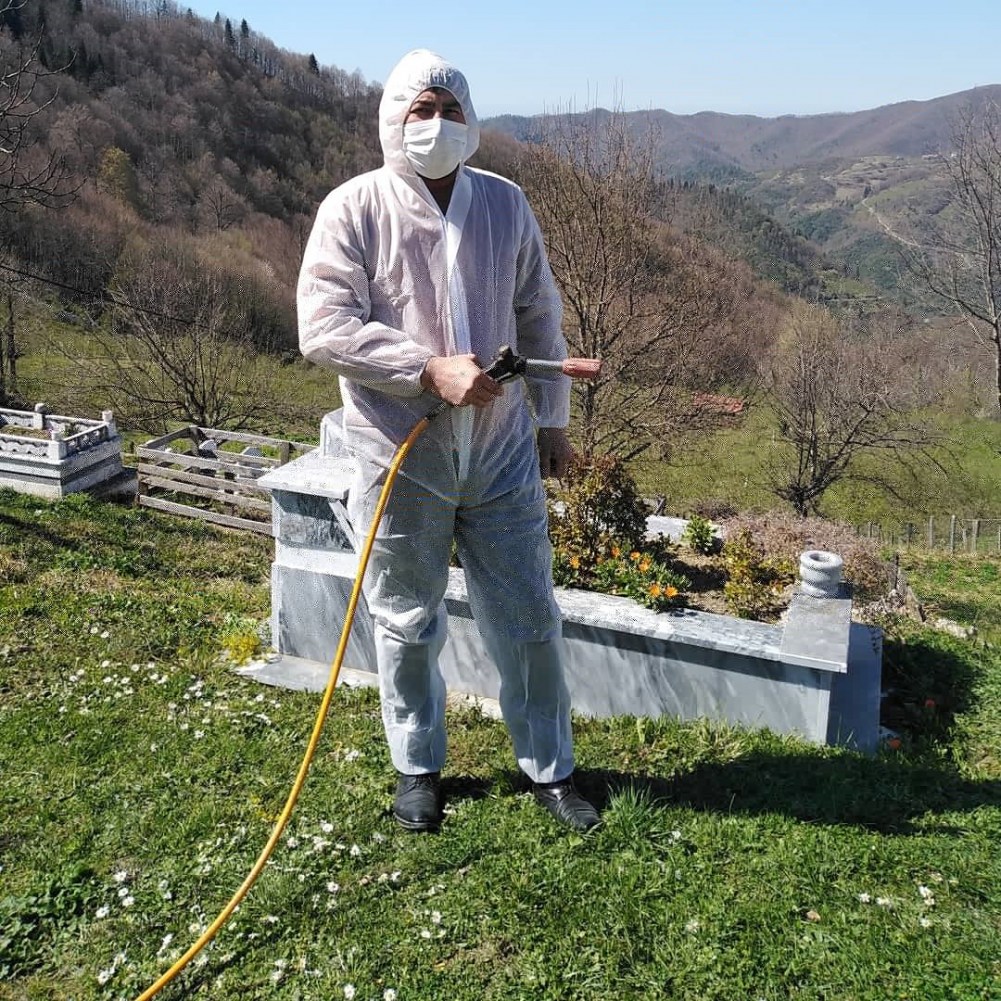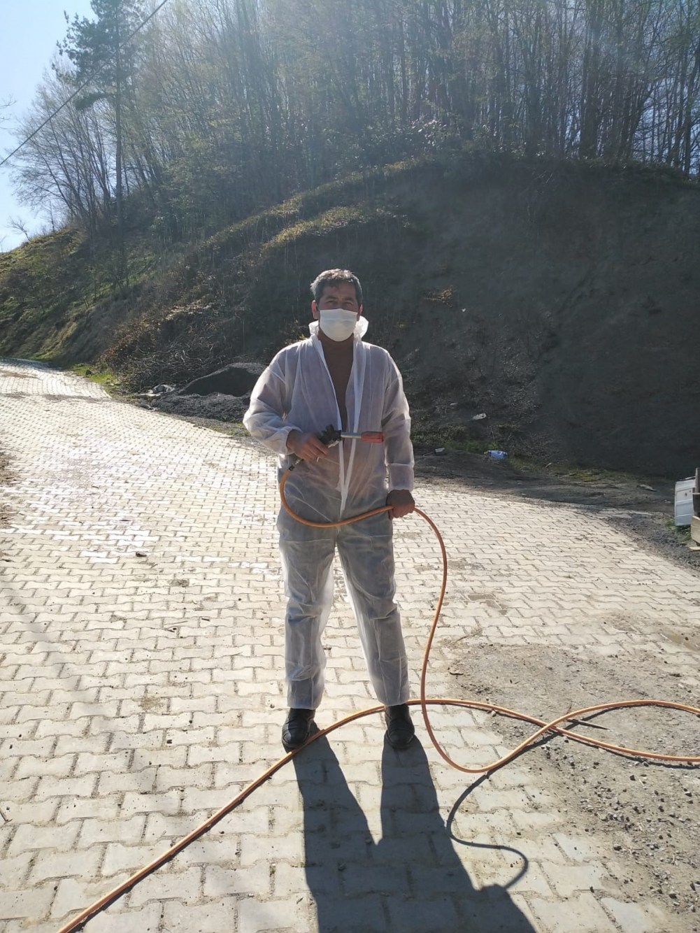 Zonguldak’ın Ereğli ilçesine bağlı Karakavuz köyü muhtarı Bilgin İlik, bayram öncesinde köyde dezenfekte çalışması yaptığı öğrenildi.