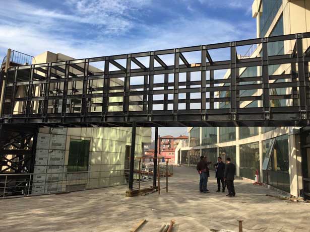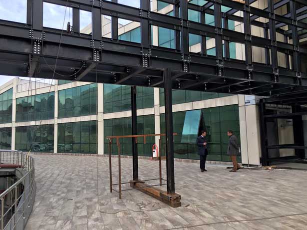 Yeni belediye binası, başkanlık ve meclis salonu katını ana bina ile bağlayan bağlantı köprüsünün, 21 metre uzunluğunda yaya geçiş köprüsü olarak tasarlandığını ve montajının gerçekleştirildiğine de kaydeden Şahin, "birinci katın boya işlemleri de tamamlanırken elektrik gibi ince işlerin de tamamlanmasıyla yeni belediye binası çok yakında hizmete girecek" dedi.