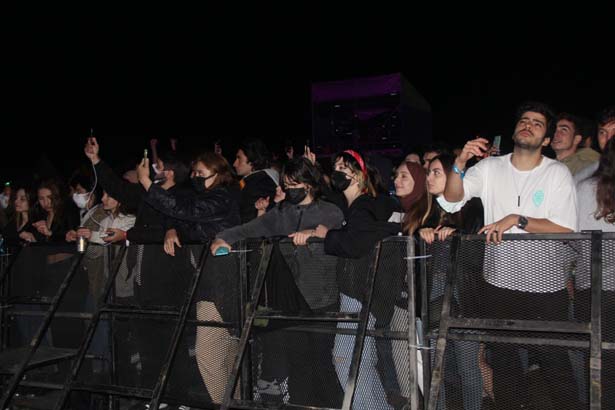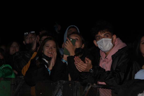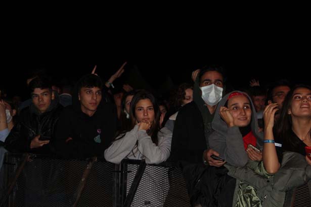 Binlerce genç konser öncesinde sosyal mesafe ve maske kuralına uyarak konser alanını doldurdu.
