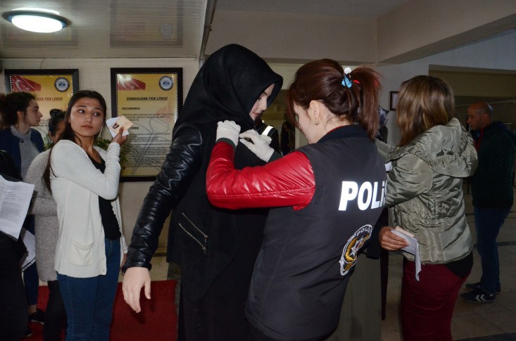 ekipleri okul girişinde üst araması yaptı. Adaylar sınav öncesi adeta didik