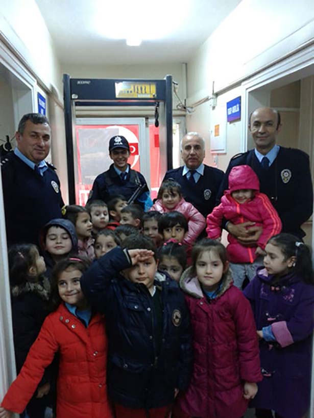 Ereğli'de okul öncesi eğitim kurumlarından Özel Gonca Kreş Ve Gündüz Balkımevi öğrencileri polis teşkilatının 170. yıl dönümünü vesilesiyle polisleri ziyaret etti. Bağlı Polis Merkezini ziyaret eden minikler kendi yaptıkları hediyeleri de polislere takdim etti. Ziyaretle ilgili açıklamada bulunan Özel Gonca Kreş Müdürü Rahşan Yılmaz, kreşlerinde eğitim gören çocukların sosyal aktiviteler dışında özel günlerde de büyüklerini unutmamaları gerektiği düşüncesi ile ziyareti gerçekleştirdiklerini söyledi.