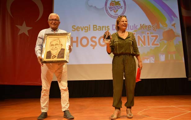 Kreş yönetimi, Başkan Posbıyık ve eşi Neriman Posbıyık’a verdikleri destek için üzerlerinde fotoğraflarının yeraldığı hediyeler takdim ettiler.