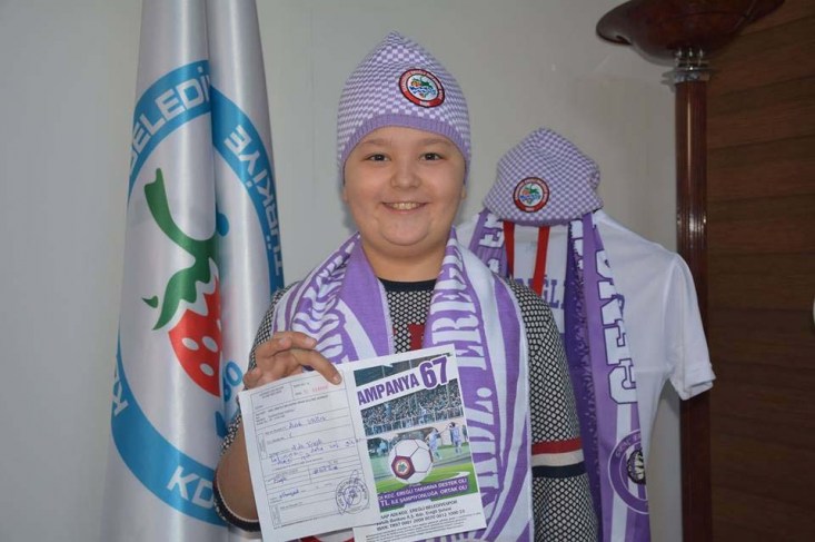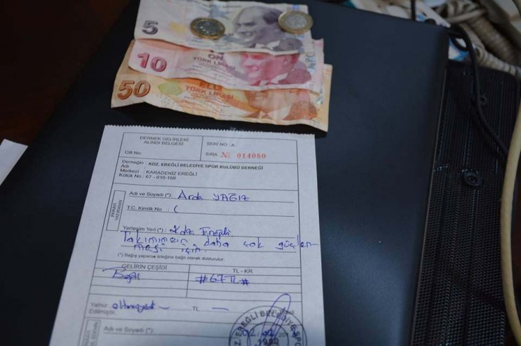 bağışladı. Küçük arda bağış makbuzunun üzerine, "Takımımızın daha fazla