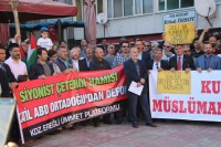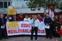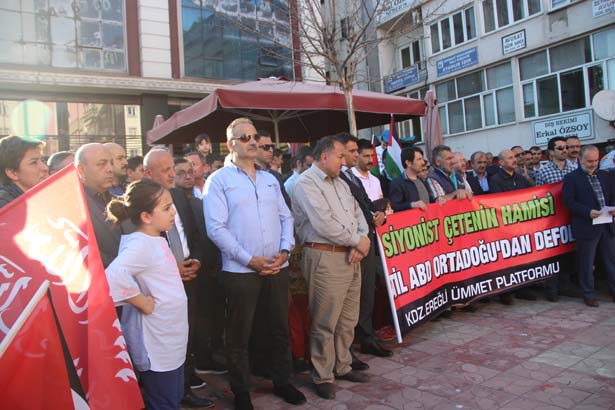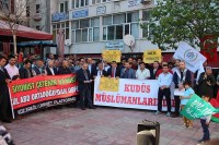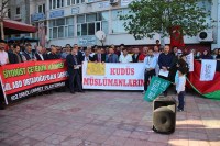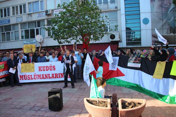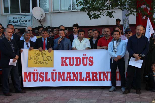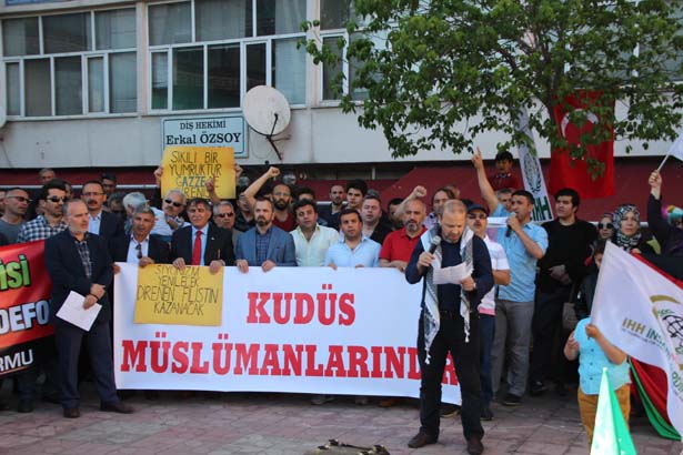 Siyasi parti ilçe başkanları, sivil toplum kuruluşu temsilcilerinin yanı sıra çok sayıda vatandaşın katıldığı protesto eyleminin açılış konuşmasını Kenan Ersoy yaparken, Kur'an-ı Kerim tilavetini de Ersin Uçar yaptı. Alanda konuşan platform sözcüsü Mustafa Köseoğlu, Kudüs'ün Filistin'in başkenti olduğunu vurguladı.