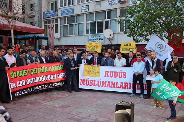 Ereğli Ümmet Platformu (İHH, ÖzgürDer, FedaDer, Ensar Vakfı ABD'nin İsrail Büyükelçiliğini Kudüs'e taşımasına tepki göstermek, amacıyla meydanlara inerek protesto etti.