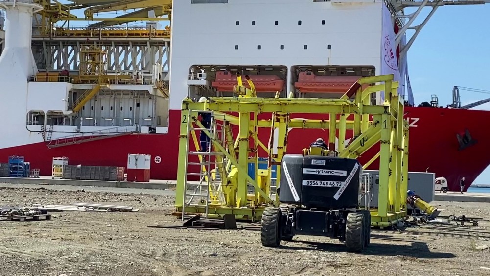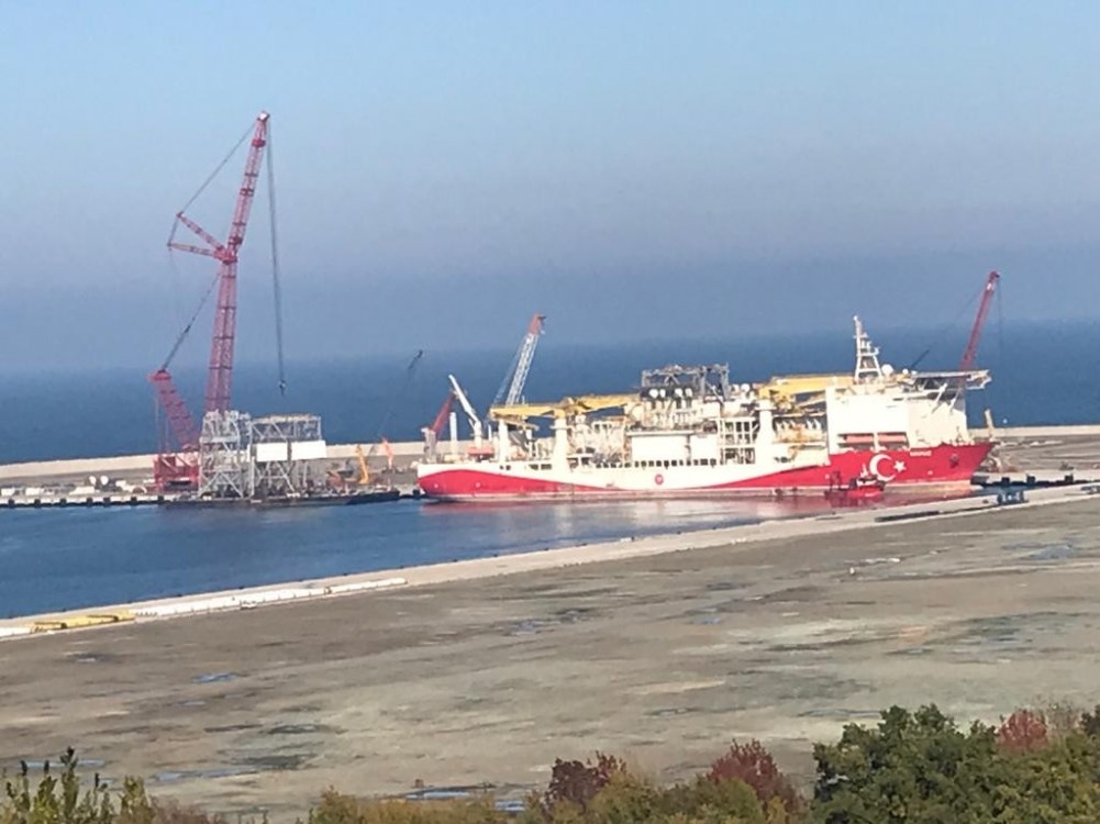 Karadeniz açıklarındaki hidrokarbon rezervinin tespit edilmek amacıyla yola çıkan ve geçen 7 Ekim günü Filyos Limanı'na demirleyen Yavuz Sondaj Gemisi'nin kule montajı için çalışmalar sürüyor.