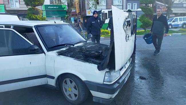 Zonguldak’ın Alaplı ilçesinde park halindeki otomobil, motor bölümünde çıkan yangın sonucunda kullanılamaz hale geldi.