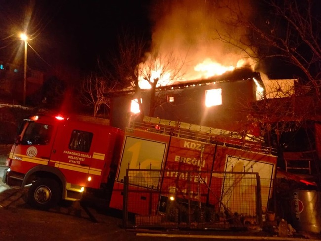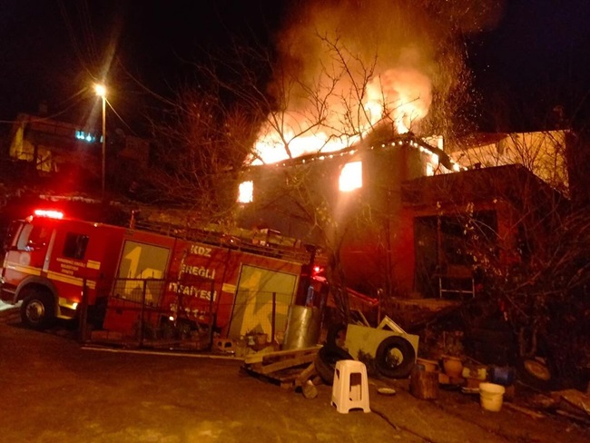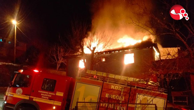 Karadeniz Ereğli ilçesinde meydana gelen yangında ev kullanılamaz hale gelirken şans eseri yaralanan olmadı.