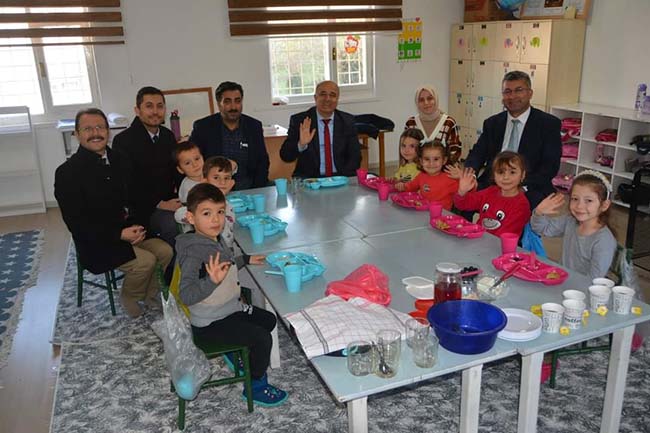 Ziyaretten önce Alaplı İsafakılı Köyü Durabeyli Mahallesi’ndeki köy yaşam merkezi projesi tarafından ana sınıfına dönüştürülen okulu ziyaret eden heyet burada okulu inceledi ve öğrencilerle güzel bir vakit geçirdiler. Öğrencilerle sohbet eden milli eğitim müdürü Çevik, minik öğrencilerin isteklerini dinledi. Projeye ilgili olarak açıklamalarda bulunan Çevik; “Alaplı İsafakılı Köyü Durabeyli Mahallesi’ndeki ana sınıfımız köy yaşam merkezi milli eğitim müdürlüğümüze bağlı olarak 9 öğrencimizle bir yaşam haline gelmiş. Öğrencilerimiz mükemmel bir şekilde hem sosyal hem de fiziki olarak etkinliklerini yapmak fırsatı buluyorlar. Bakanlığımızın ve devletimizin eğitime verdiği önemi ve öğrencilerimize köylerde yaşatma gayesini en güzel bir şekilde yoğun bir şekilde gördüğünüz etkinliklerin başında geliyor. Bu hususta Durabeyli de, Hacıhasan Köyü’nde, Aydınyayla, Ahiler, Yenidoğan Köyü’ndeki okulları inceleyip buraları açmak için girişimlerimiz olacak. Eğitime ve fiziki olarak bakanlığımızın vermiş olduğu desteklerden dolayı büyüklerimize teşekkür ediyoruz" dedi.
