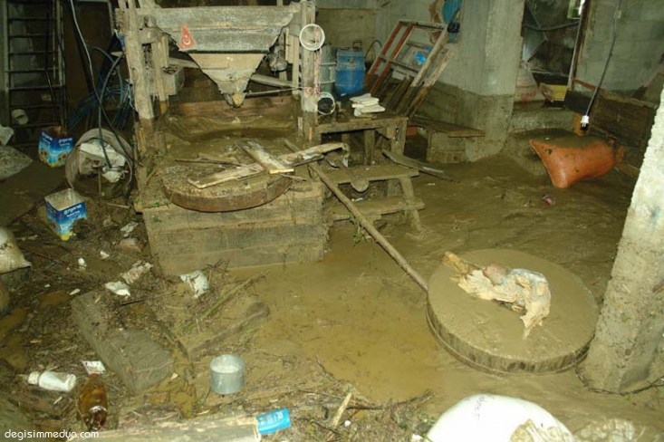 Değirmende bulunan unlar ise sel sularına kapıldı.