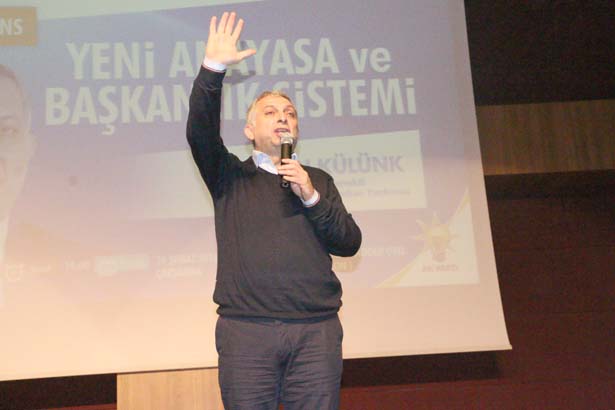 Külünk, AK Parti Ereğli İlçe Teşkilatı tarafından Gülüç Beldesi'ndeki Büyük Anadolu Otel'de düzenlenen konferansta yaptığı konuşmada ilçelerde ilk kez 'Yeni Anayasa ve Başkanlık Sistemi'ni Kdz. Ereğli'de açıkladı.