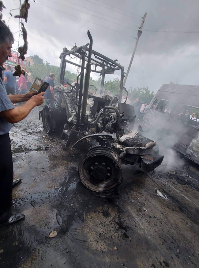 Zonguldak'ın Alaplı ilçesine bağlı Alioğlu Köyü Doruk Mahallesinde bir evin altındaki traktör ve minibüs tamamen yandı. İtfaiye olay yerinde söndürme çalışması başlatırken yangının kundaklamadan kaynaklı çıkarıldığı iddia edildi.