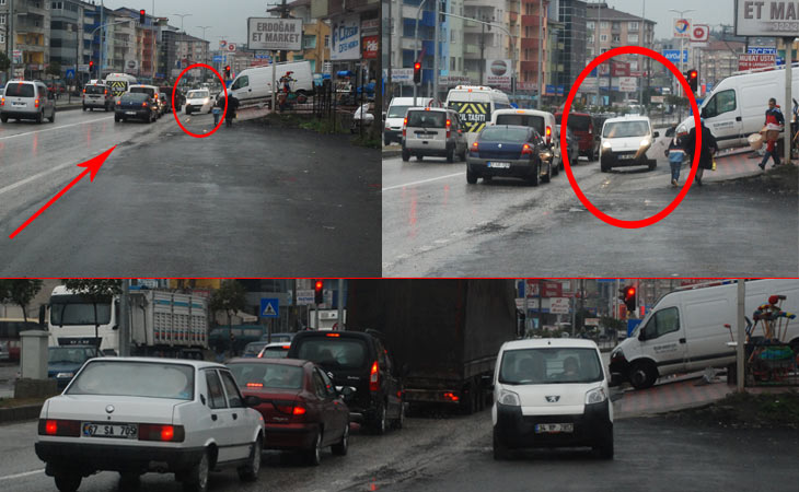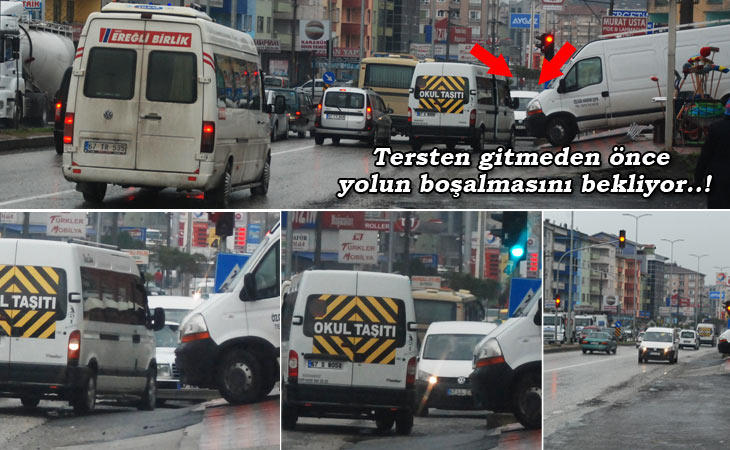 kırmızı ışıkta beklemelerini fırsat bilerek ters istikamette metrelerce