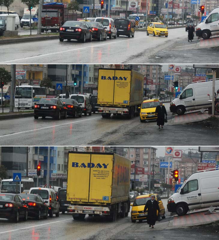 Şehir trafiğine çıkan her maganda kendine göre trafik kuralı belirlerse olacağı budur.Biraz ileride göbekten dönerek gelse hiç bir soru yok. Ama adam odun ya her yol benim gerisi derdim değil demekte.Trafik polislerimizde bir köşede" aman bana dokunmayan yılan bin yıl yaşasın" derdinde.