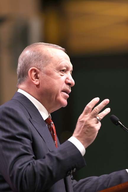 Erdoğan, “Küresel yönetim ve ekonomi sisteminin yeni baştan yapılandığı şu süreçte Türkiye’yi hak ettiği yere getirmek için son iki asrın önemli fırsatını yakalamış durumdayız. Sürekli altını çizdiğimiz 2023 hedefleri ve 2053 vizyonu Türkiye için sıradan siyasi söylemler değil, tarihi bir kavşak noktasının ifadesidir” dedi.