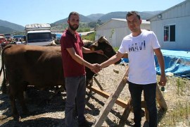 İlçedeki canlı hayvan pazarında kurbanlık hayvan alımlarında alıcı ve satıcılar arasında sıkı pazarlıklar yapılıyor.