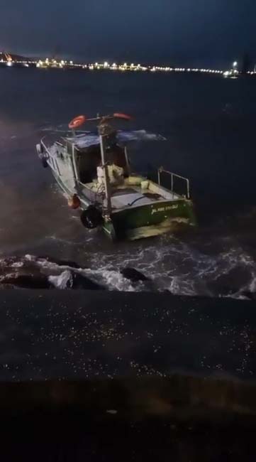 Edinilen bilgiye göre, sabah saat 06.00 sıralarında etkisini artıran fırtına nedeniyle denizde oluşan şiddetli dalgalar, sahile yakın bir noktada bulunan tekneyi kontrolsüz şekilde sürükledi. Görüntülerde, dalgaların etkisiyle savrulan teknenin Sevgi, Barış ve Dostluk Köprüsü'ne çarptığı anlar yer aldı.