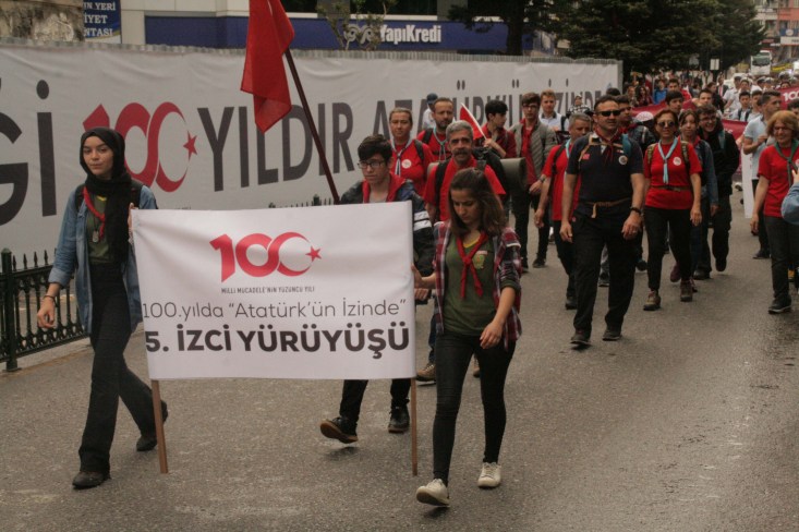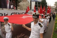 Karadeniz Ereğli'de 19 Mayıs Atatürk'ü Anma, Gençlik ve Spor Bayramı kapsamında düzenlenen ilk etkinlik olan kortej yürüyüşü, Erdemir Caddesi Jet Yol Ayrımı bölgesinden başladı. Hatice Erdem Mesleki ve Teknik Anadolu Lisesi Armoni Bandosu eşliğinde gerçekleştirilen yürüyüşe Kdz Ereğli Kaymakamı İsmail Çorumluoğlu, CHP Zonguldak Milletvekili Ünal Demirtaş, Karadeniz Bölge ve Garnizon Komutanı Tuğamiral Özden Yazıcıoğlu, Ereğli Belediye Başkanı Halil Posbıyık, daire müdürleri, sivil toplum kuruluşu temsilcileri, gaziler, öğrenciler ve vatandaşlar katıldı.