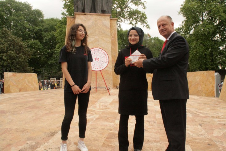 Milli Eğitim Müdürlüğü'nce ilçedeki okullar arasında 19 Mayıs temasıyla düzenlenen Resim, Şiir ve Kompozisyon yarışmalarında dereceye giren öğrencilere ödülleri, Kaymakam Çorumluoğlu, Milletvekili Demirtaş, Bölge Komutanı Yazıcıoğlu ve Belediye Başkanı Posbıyık tarafından verildi.