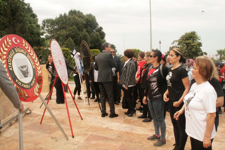 Çelenklerin sunulmasının ardından dernek üyeleri ve partililer anıt önünde hatıra fotoğrafı çektirdi.