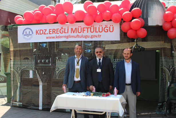 " Ümmeti olmakla şeref duyduğumuz sevgili peygamberimiz Hz. Muhammet Mustafa S.A.V Efendimizin Kutlu doğum haftası münasebetiyle, Kdz Ereğli müftülüğü tarafından din gönüllüsü arkadaşlarımızla berber kutlu doğum tanıtım evimizde kutlu doğum haftasını Bugün(Salı) sabah saat 10.00 itibari ile başlatmış bulunuyoruz. Ereğli Halkımıza zemzem, Hurma ve değişik ikramlarda bulunmaya çalışıyoruz. Kutlu doğum haftamızın Ereğli'mize, ülkemize ve dünyaya hayırlı olmasını temennisini diliyoruz. Dünya bize biz birbirimize emanetiz, Kutlu doğu haftamız mübarek olsun" dedi.