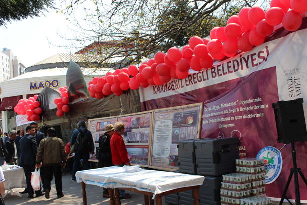 Kdz. Ereğli Belediyesi ile Müftülük tarafından Abdi İpekçi sergi salonu önünde gerçekleştirilen etkinlik kapsamında vatandaşlara Kutlu Doğum pilavı dağıtıldı.