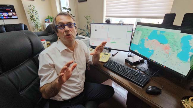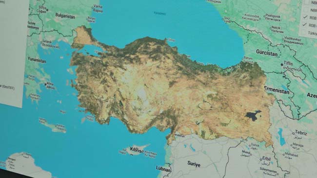 "Haziran ayındaki uydu verileriyle Ağustos ayındaki uydu verilerini sınıflandırdık. Bunları ayrı ayrı değerlendirdik. Türkiye'nin tamamı için bitki örtüsündeki değişim haritasını ortaya çıkarttık. Bunun için bitkilerdeki sıvı içeriğini, su içeriğini görebilmek için en uygun bantlar yakın kızılötesi ve kısa dalga kızılötesi bantları. Bu bantları kullanarak Haziran ayı için ve Ağustos ayı için su içerisindeki değişimi görmek idi. Elde ettiğimiz görüntüleri su içeriğine göre sınıflandırdığımızda ekranda gördüğümüz tablo karşımıza çıktı. Buradaki haritada beyaz alanlar, Haziran ayı ile Ağustos ayı arasında herhangi bir değişim olmayan yani bitki örtüsünde veya bitkilerdeki su içeriğinde herhangi bir değişim olmayan nötr alanları gösteriyor. Ama beyazdan kırmızıya doğru pembe ve kırmızıya doğru giden renkler bitkilerde ve zeminde ve bitki örtüsünde ciddi bir azalmaya, bitkilerin su içeriğinde ciddi bir azalmaya işaret ediyor. Yani bitkilerin su stresine, yoğun kuraklık nedeniyle su stresine girdiğini bize gösteriyor. Tabii en üst seviyede kırmızı, koyu kırmızı renkler yangın nedeniyle su içeriğinin tamamen ortadan kalktığı, bitki içeriğinin tamamen ortadan kalktığı yerleri gösteriyor."