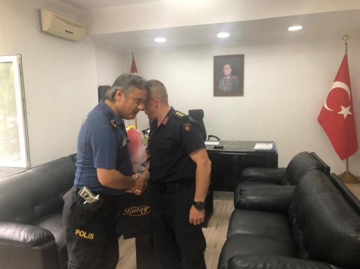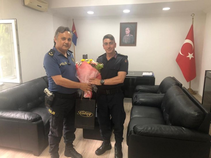 Zonguldak'ın Ereğli ilçesi Emniyet Müdürü Ferdi Kuyu, Jandarma teşkilatının 180. Yıl dönümü dolayısıyla İlçe Jandarma Komutanı Yüzbaşı Erkan Bülbül'e tebrik ziyareti gerçekleştirdi.
