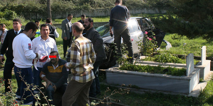 Bir kuyumcuyu soyan 4 kişinin içinde olduğu otomobil, kontrolden çıkarak mezarlığa uçtu. Olayda hırslık zanlıları yaralanırken, araçtaki çalıntı altınlara el konuldu.