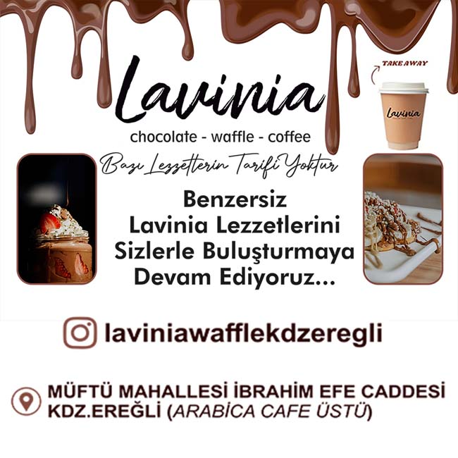 ‘Bazı lezzetlerin Tarifi Yoktur’ sloganıyla yola çıkan Lavinia Cafe, Karadeniz Ereğlililerle buluştu. Müftü Mahallesi İbrahim Efe Caddesi Arabica Cafe üstünde açılan Lavinia Cafe, müşterilerine lezzet garantisi veriyor.