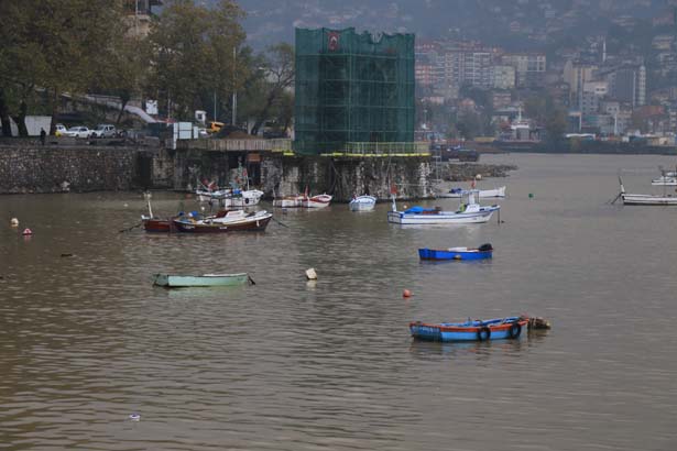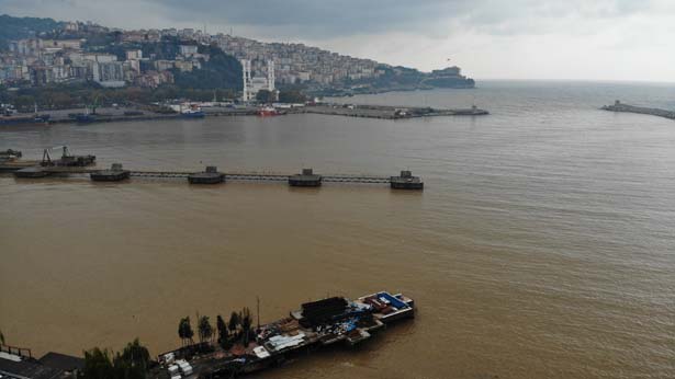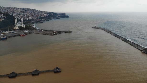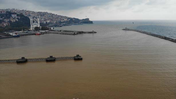 Meteoroloji Genel Müdürlüğü'nün uyarılarının ardından saatteki kızı 75 kilometreye kadar ulaşan kuvvetli yağış sonrası Zonguldak Limanı adeta sarıya boyandı. Çamur, Üzülmez ve Çaydamar derelerinin birleştiği noktadan Karadeniz'e aktı.