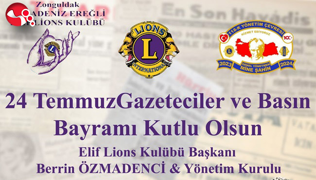 Lions Kulübü Yönetim Kurulu Başkanı Berrin Özmadenci ve Yönetim Kurulu 24 Temmuz Gazeteciler Basın bayramını kutladı.