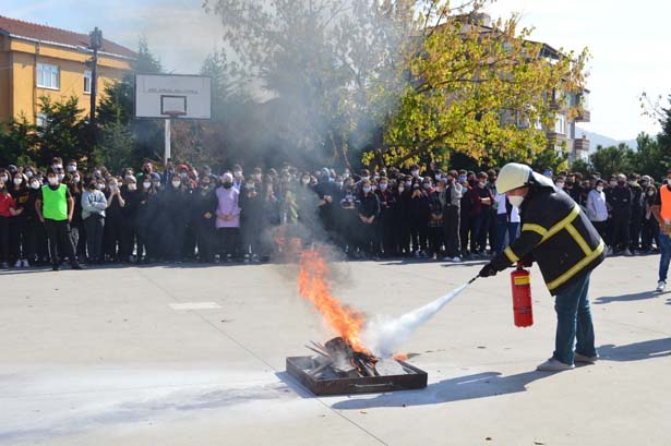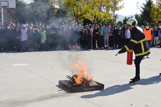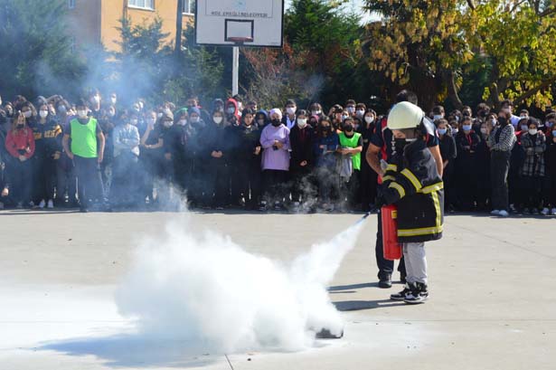 İtfaiye Amiri Burak Demirören, tatbikat sırasında öğrencilere hitaben yaptığı konuşmada; doğal afetin nerede ve ne zaman olacağının belli olmadığına ve her zaman hazırlıklı olunması gerektiğine dikkat çekerek şunları söyledi:
