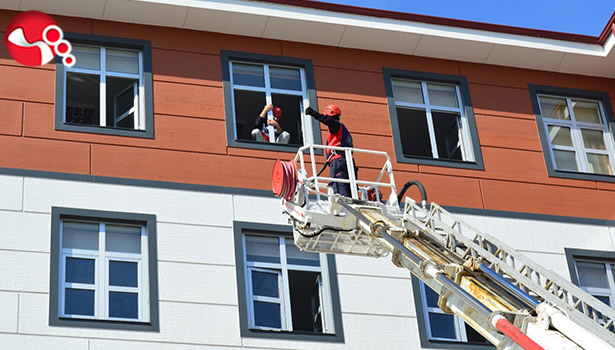 Okulun Afet Kulübü’nün koordinesinde gerçekleştirilen tatbikatta, senaryo gereği çalan alarmla öğrenciler deprem olduğu sırada sıraların yanına çökerek kendilerini nasıl koruyacaklarını öğrendi. İkinci alarmla birlikte ise öğrencilerin 3 buçuk dakikadan kısa bir sürede okul binasını düzenli bir şekilde tahliye etmeleri sağlandı. Yine senaryo gereği okul binasının 5’inci katında mahsur kalan bir öğretmen için 112 Acil Durum Merkezi’ne haber verildi. Kısa sürede olay yerine ulaşan İtfaiye ekipleri, mahsur kalan öğretmeni sepetli merdivenle kurtararak başarılı bir şekilde güvenli bölgeye indirdi. Tatbikatın son bölümünde ise bazı öğretmen ve öğrencilere yangın tüpüyle ateşe müdahale etme teknikleri öğretildi.