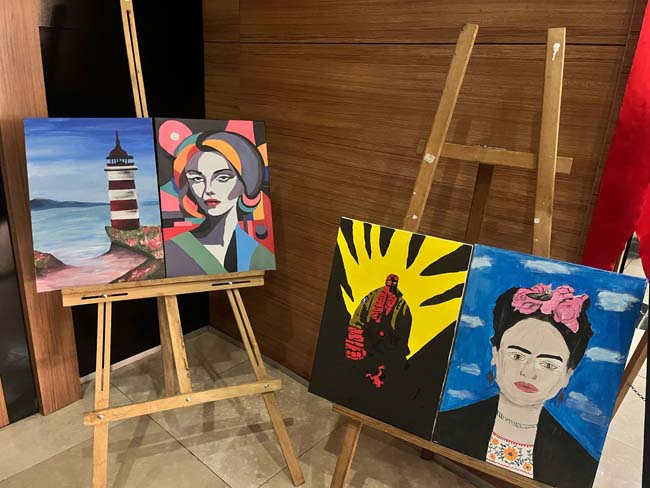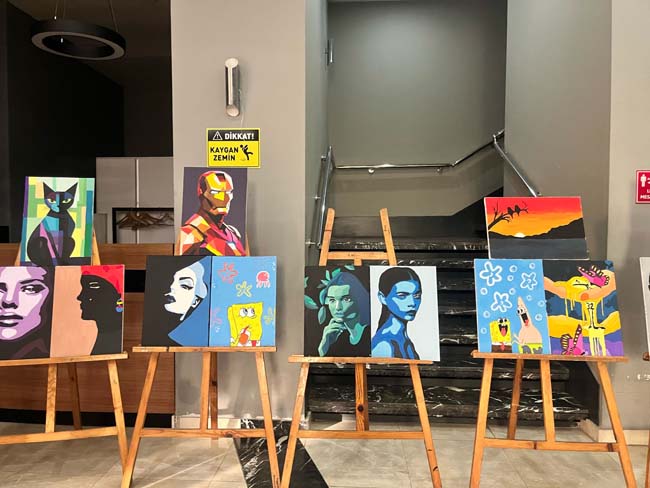 Etkinlikte öğrencilerin resimleri büyük ilgi görürken müzik korosu sahnede söyledikleri birbirinden güzel şarkılarla kulakların pasını sildi.