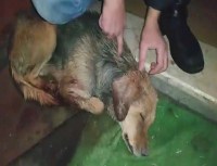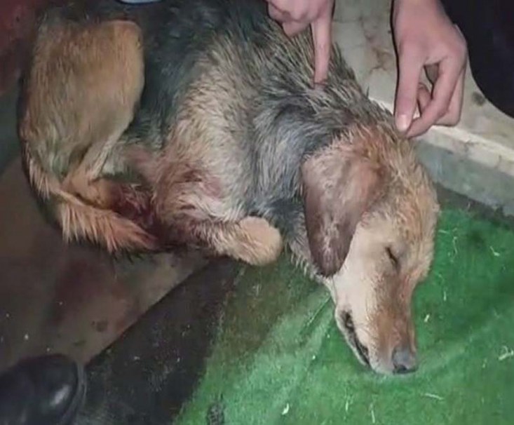 tedavi altına alındığı, ancak kafasında aldığı saçmalardan dolayı köpeğin