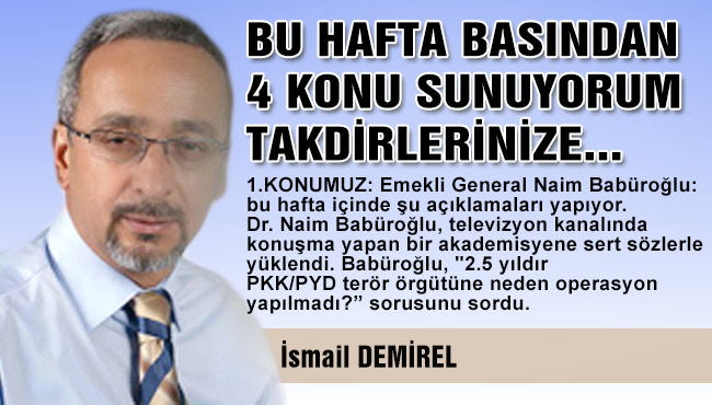- KONUMUZ: Emekli General Naim Babüroğlu: bu hafta içinde şu açıklamaları yapıyor.