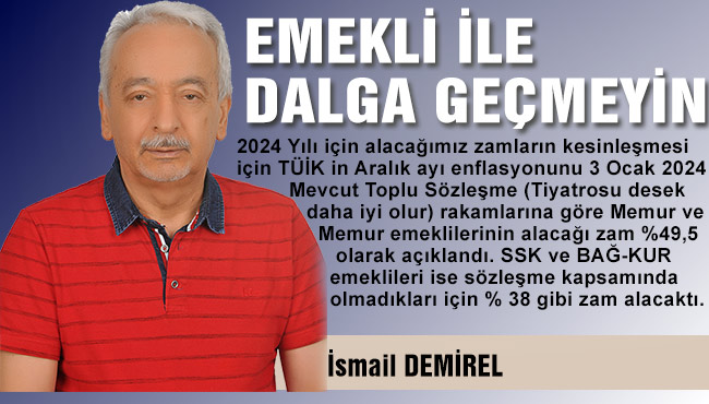 Mevcut Toplu Sözleşme (Tiyatrosu desek daha iyi olur) rakamlarına göre Memur ve Memur emeklilerinin alacağı zam %49,5 olarak açıklandı. SSK ve BAĞ-KUR emeklileri ise sözleşme kapsamında olmadıkları için % 38 gibi zam alacaktı.
