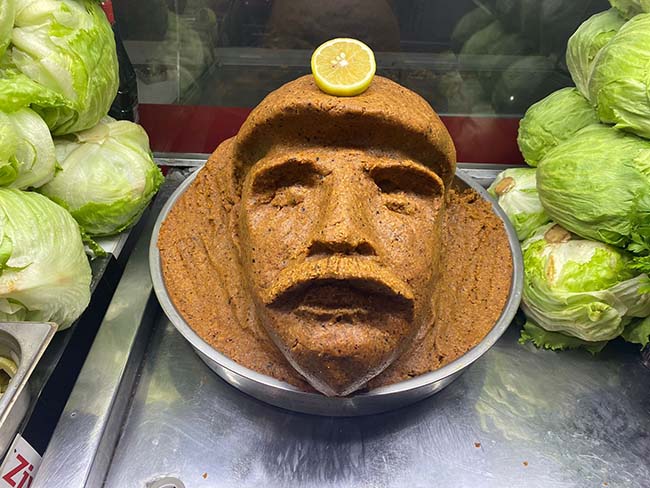 Devrek’te esnaflık yapan 46 yaşındaki Erkan Özdemir'in çiğ köfteden yaptığı madenci silüeti ilgi görüyor. Çiğ köfte dükkanı işleten Özdemir, maden faciasından etkilenerek madencilere destek olmak amacıyla böyle bir çalışma yaptığını anlattı.