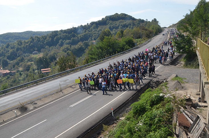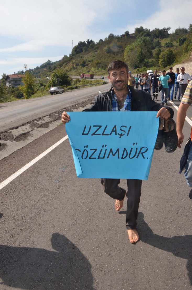 Karadeniz Ereğli ilçesine bağlı Kandilli beldesinde bulunan Hema A.Ş.'ye ait maden ocağında çalışan yaklaşık 500 işçi, sabah 09.00'da başlayan yürüyüş eylemini sürdürüyor. Yaklaşık 40 kilometrelik yolu yürürken ayakları şişen bazı maden işçileri, eylemi çıplak ayaklarla devam ettiriyor.
